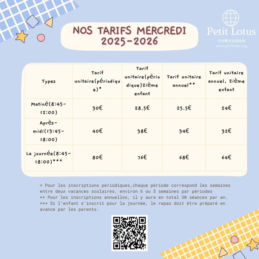 2025-2026 Site ermitage Pré-inscription aux ateliers du mercredi,ou cours de préparation HSK MAISON de l'ermitage 21-23 Rue de l'ermitage, 78000 Versailles Fiche de renseignement Nom Prénom Adresse Code postal Ville N° téléphone Email Age Ateliers & Cours Ateliers culturels franco-chinois du mercredi 8:45-12:00 周三上午文化活动 (30 séances par an) Ateliers culturels franco-chinois du mercredi 13:45-18:00 周三下午文化活动 (30 séances par an) Ateliers culturels franco-chinois du mercredi 8:45-18:00 周三全天文化活动 (30 séances par an) Cours de préparation HSK 5 mercredi 19:00-20:30 (30 séances par an) Cours d'essai Le 03/09/2025 pour les ateliers culturels franco-chinois du mercredi 8:45-12:00 Le 10/09/2025 pour les ateliers culturels franco-chinois du mercredi 8:45-12:00 le 03/09/2025 pour les ateliers culturels franco-chinois du mercredi 13:45-18:00 Le 10/09/2025 pour les ateliers culturels franco-chinois du mercredi 13:45-18:00 Le 17/09/2025 pour le cours de préparation HSK 5 mercredi 19:00-20:30 Autre information Pré-inscrire